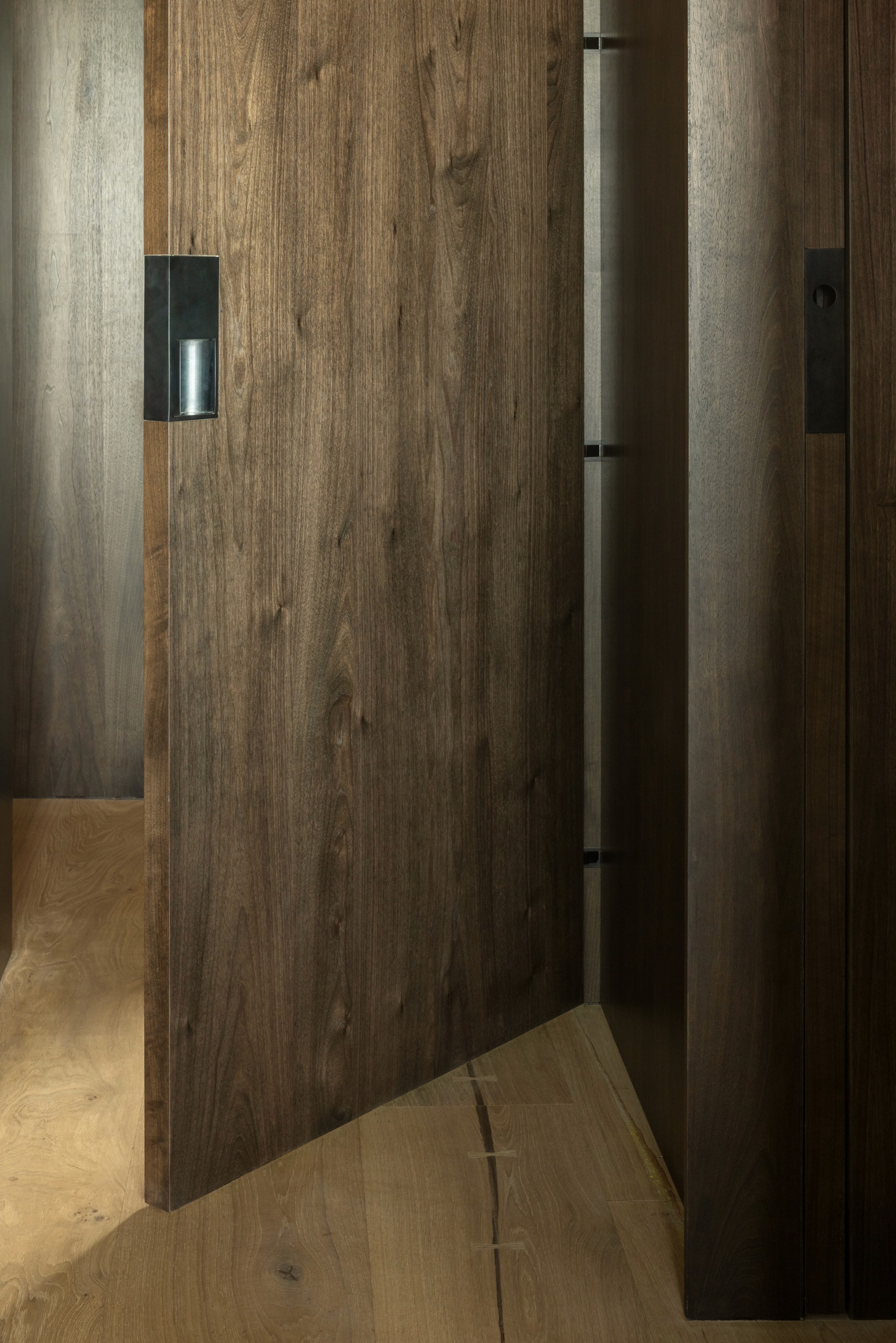 The flexibility to use this pull with any type of door function creates an opportunity for a cohesive look throughout the entire home. Crafted from fully welded steel, each handle is fabricated to order at our partner shop in Colorado, and installed via integrated dowels and concealed set screws.