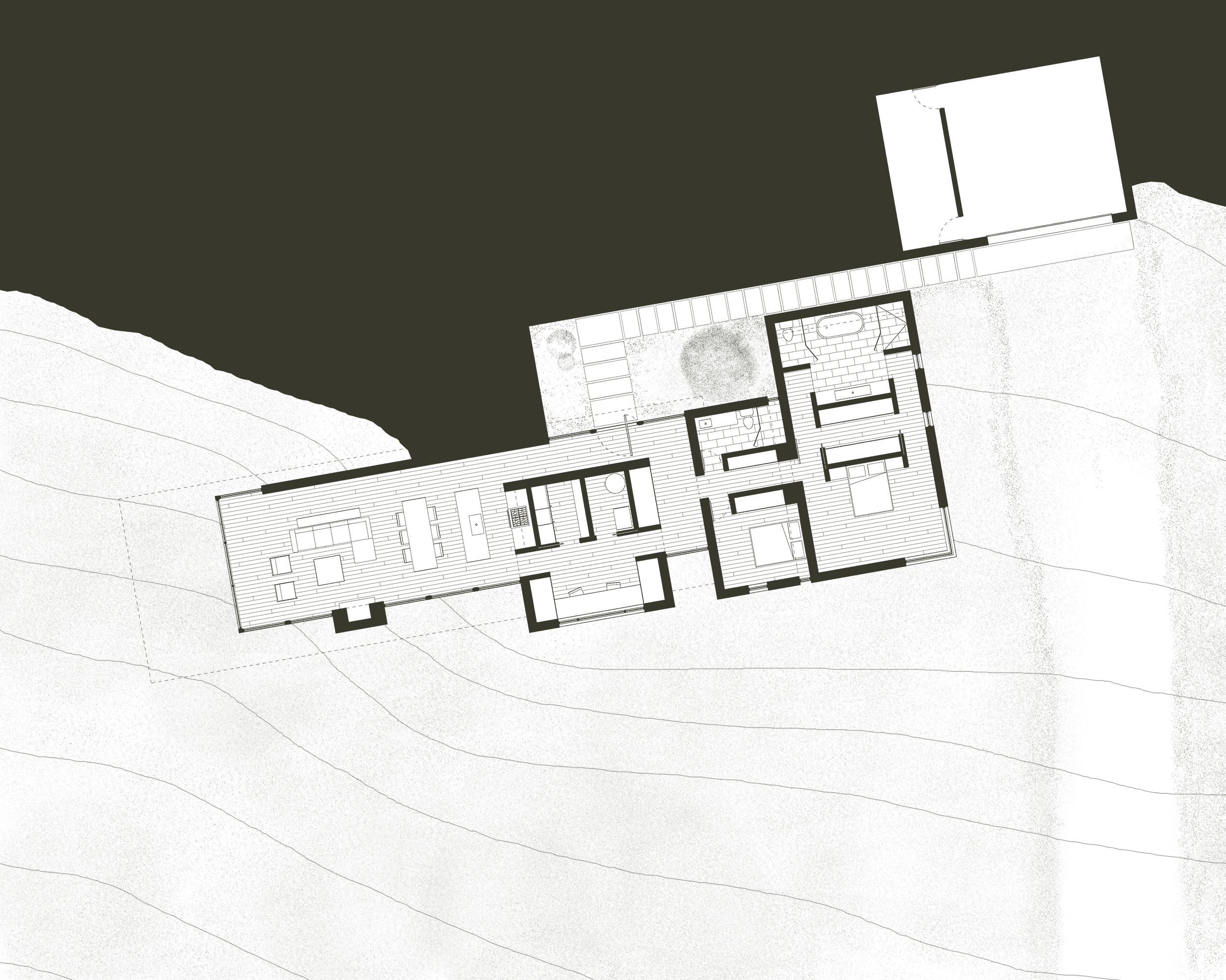 Located outside of Bridgeport, California, the Headframe House embeds itself into a south facing slope overlooking the Mono Lake Valley and Inyo Mountains to the east, and the High Sierras to the west.