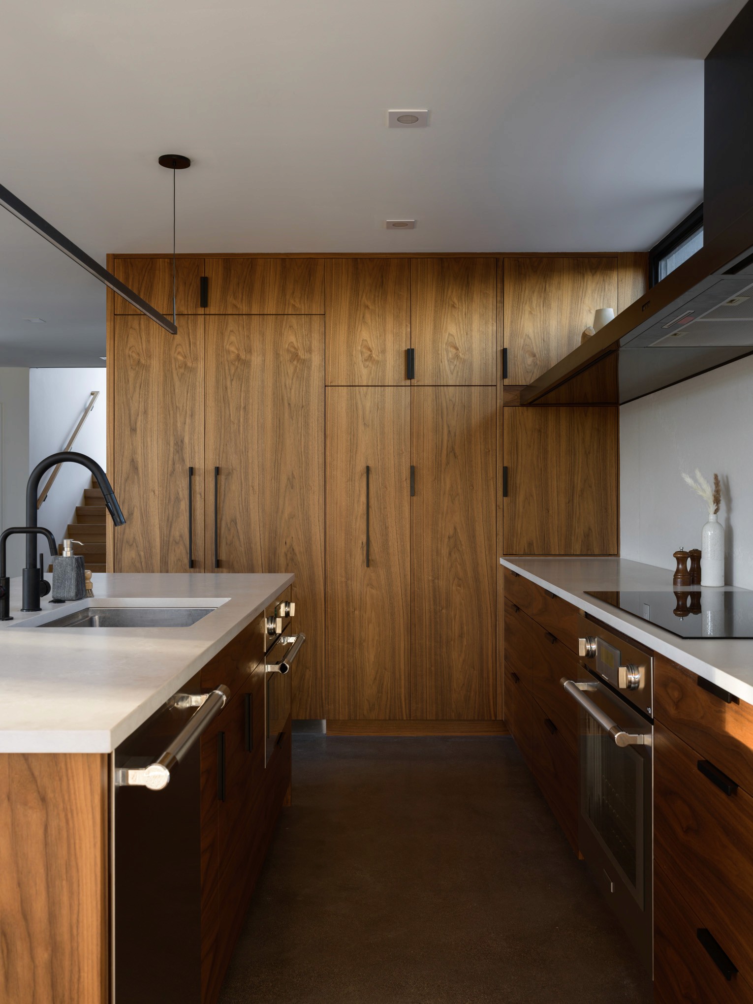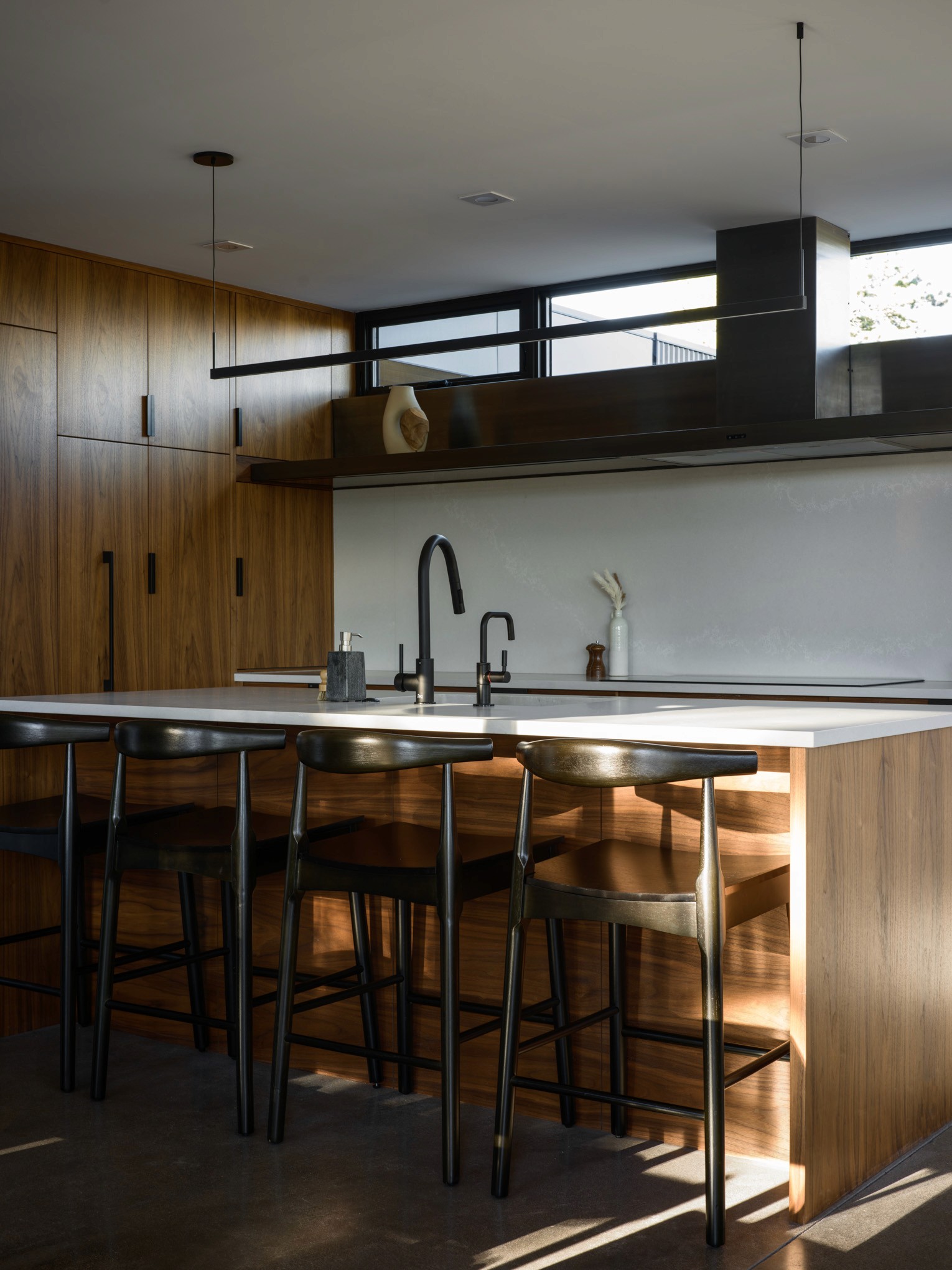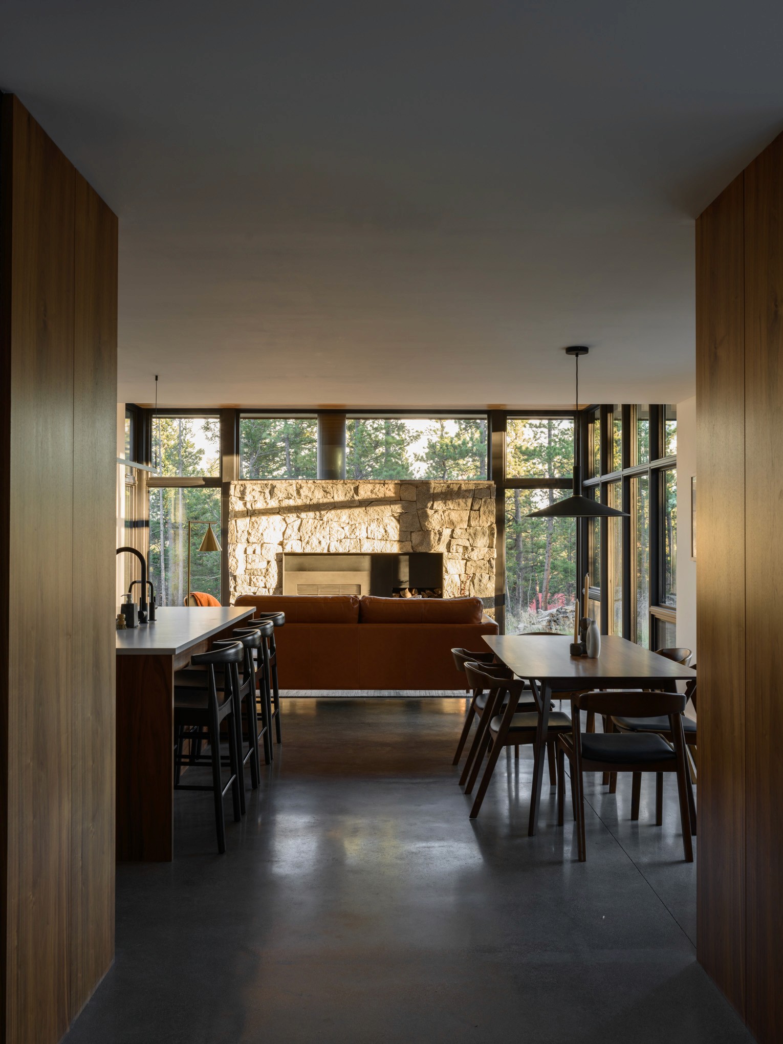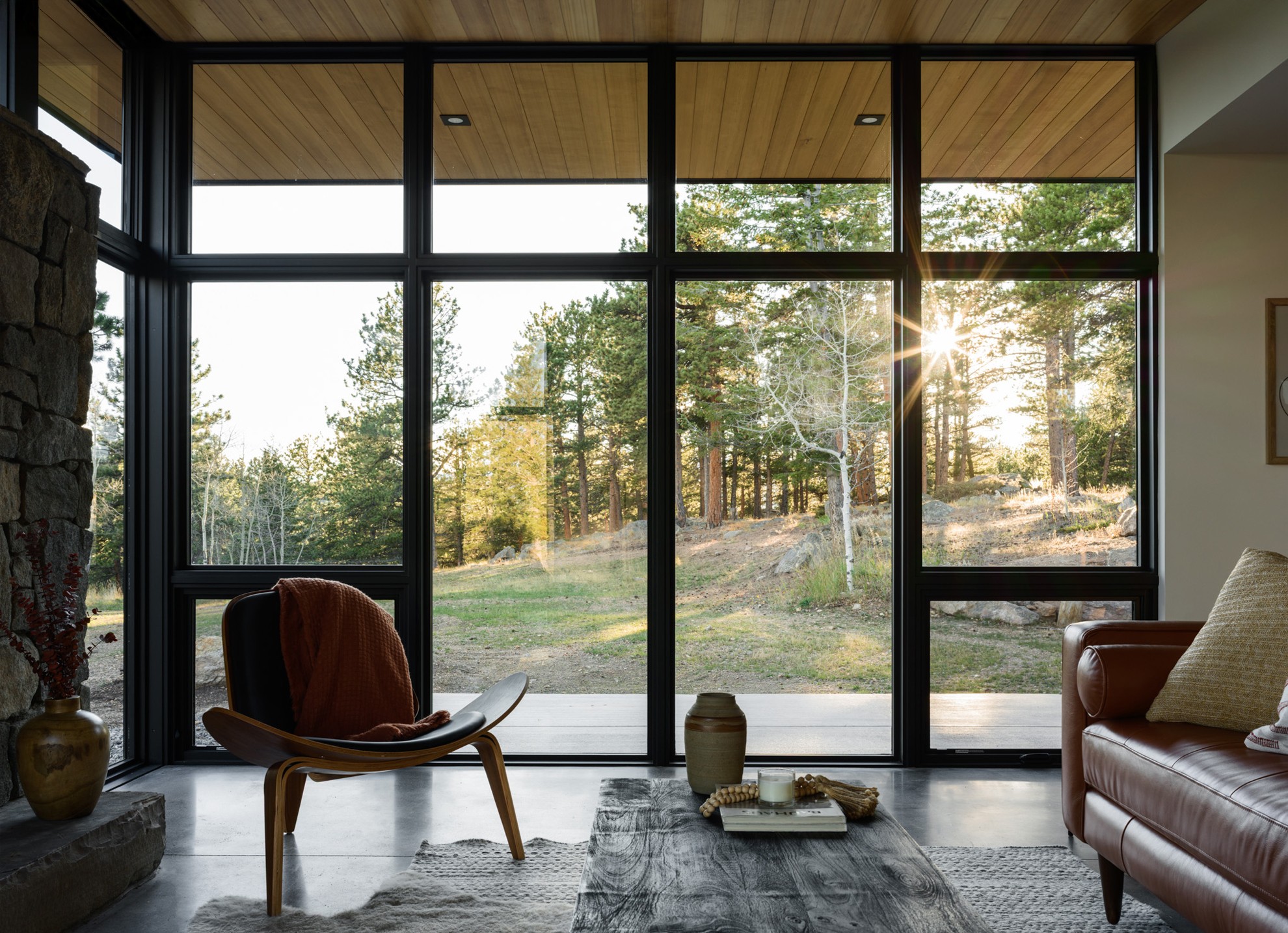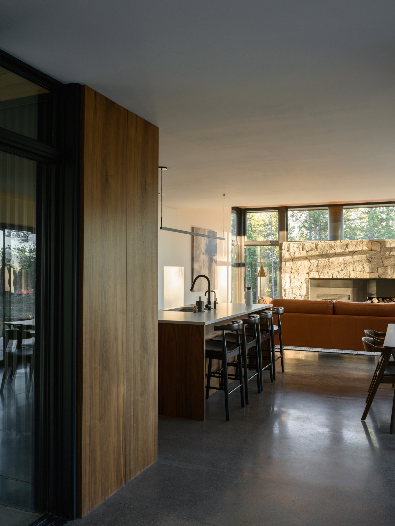The owners wisely chose to invest in a fully air-sealed building envelope to protect from the harsh weather, and fireproof exterior insulation and siding to protect against future wildfire threats. The structure is further fire-protected by gypsum board under any exterior wood finish. Radiant heating provides the base temperature control, with a high-efficiency wood stove adding that extra layer of cozy heat in the winter.